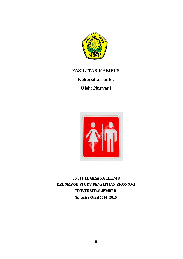 Doc Fasilitas Kampus Kebersihan Toilet Oleh Nuryani Unit Pelaksana Teknis Kelompok Study Penelitian Ekonomi Universitas Jember Semester Gasal 2014 2015 Ii Daftar Isi Nur Nisaa Academia Edu