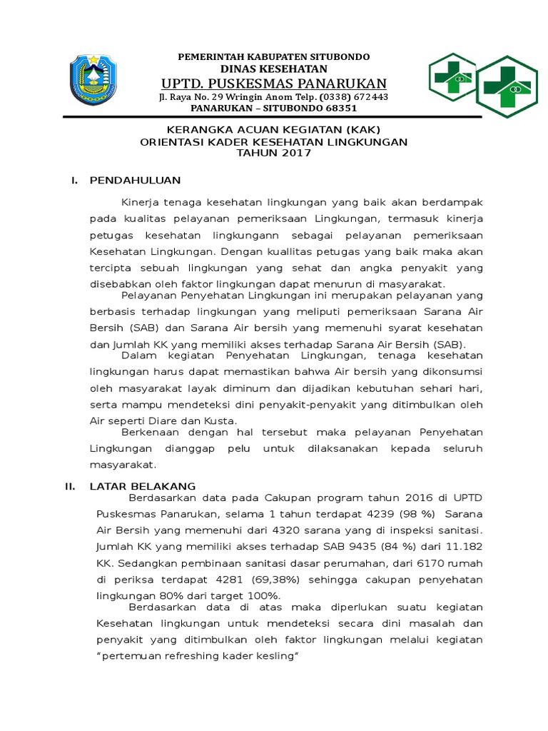 Kerangka Acuan Kesehatan Lingkungan Doc