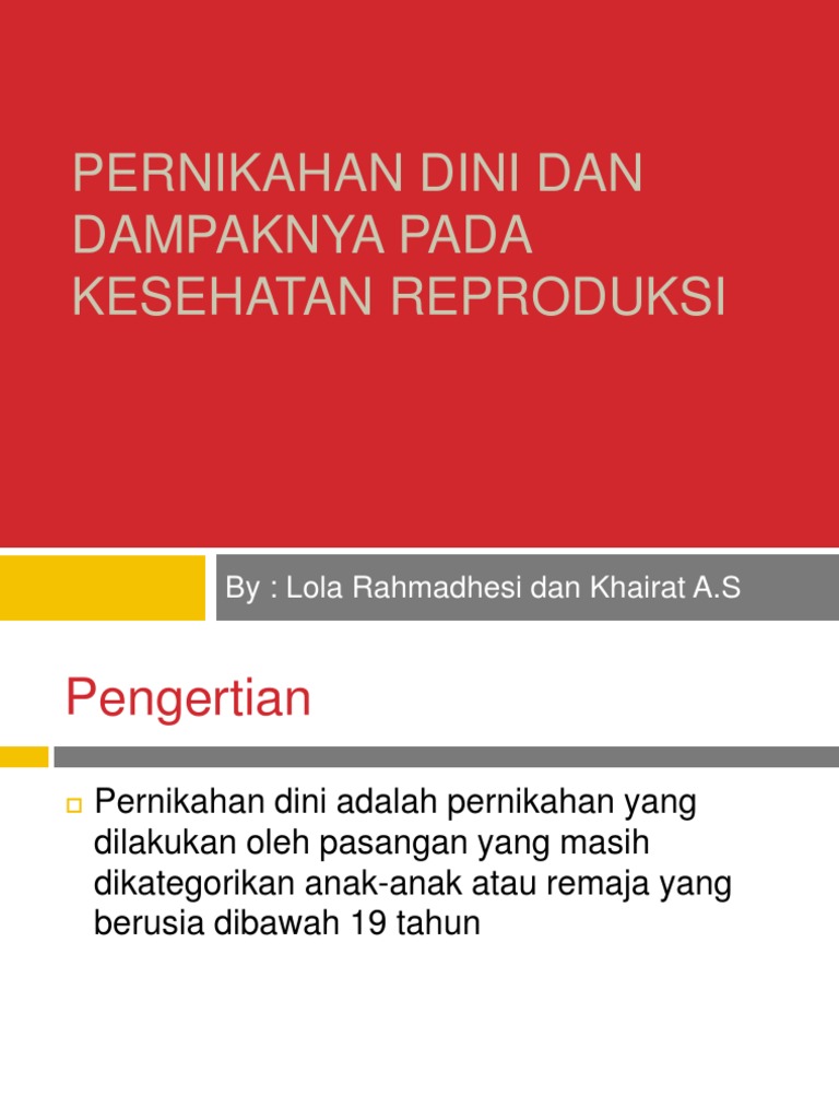 Pernikahan Dini Dan Dampaknya Pada Kesehatan Reproduksi