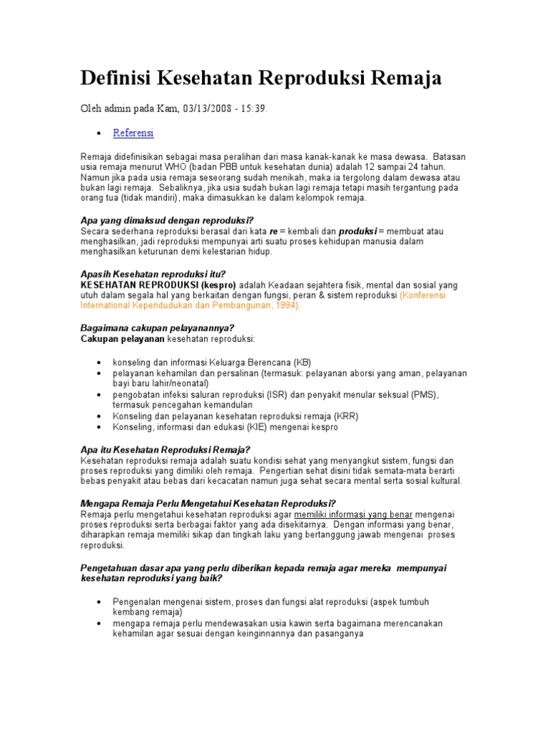 Pengertian Kesehatan Reproduksi Remaja Menurut Who
