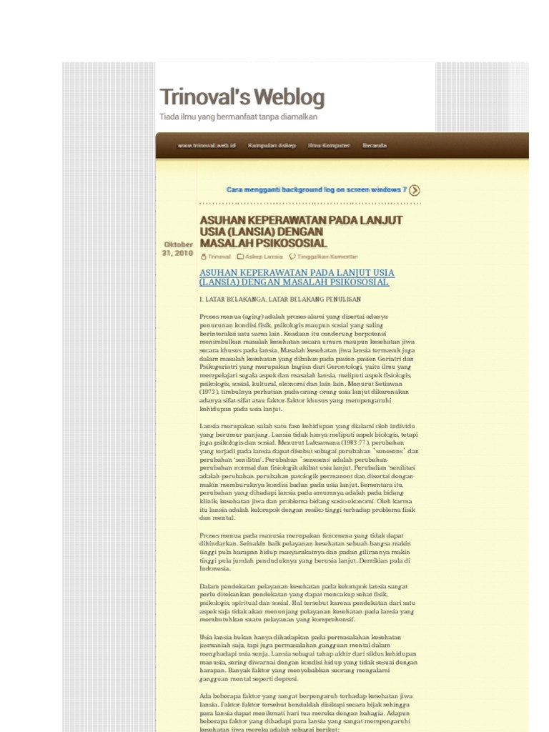 Asuhan Keperawatan Pada Lanjut Usia Lansia Dengan Masalah Psikososial Trinoval S Weblog