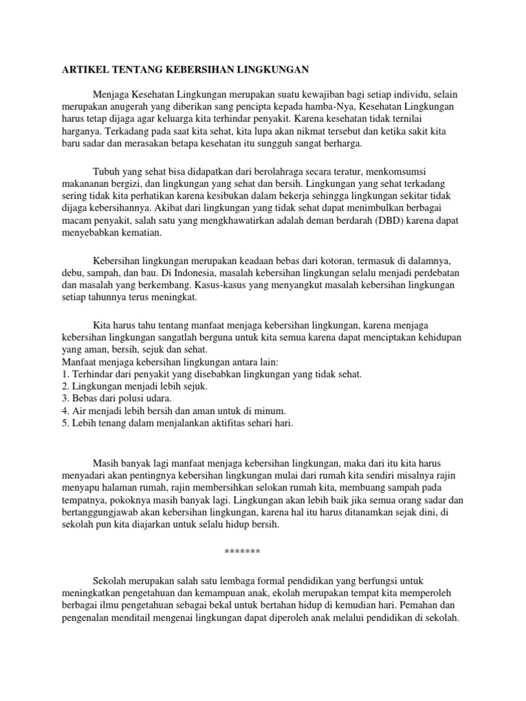 Doc Pidato Kebersihan Lingkungan Sekolah Aditya Hidayat Academia Edu
