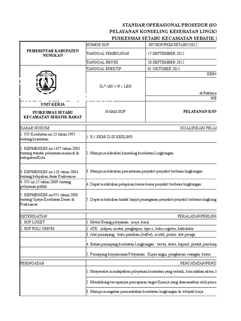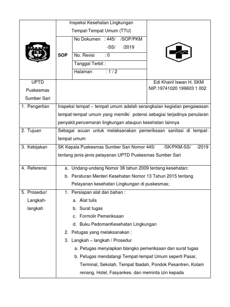 Sop Inspeksi Kesehatan Lingkungan Docx