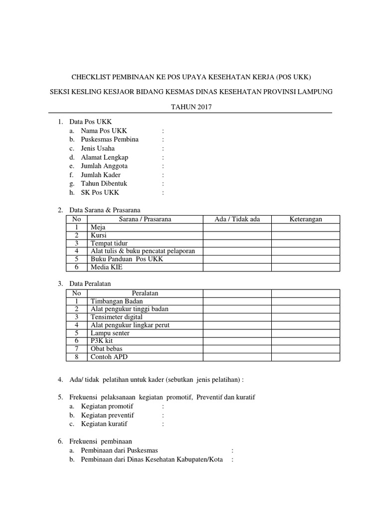 Checklist Pembinaan Ke Pos Upaya Kesehatan Kerja Docx